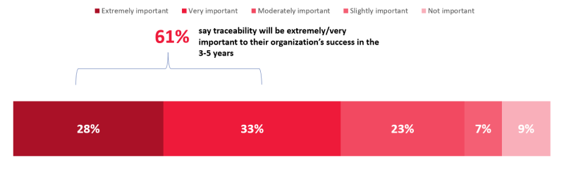 Nearly two-thirds (63%) believe traceability is a competitive advantage for their business and 61% say traceability will be extremely or very important to their organization’s success in 3-5 years.