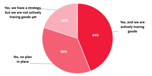 While nearly 40% of businesses are fully or almost fully committed to end-to-end traceability, more than half (56%) have no traceability plan in place or are not actively tracing goods.